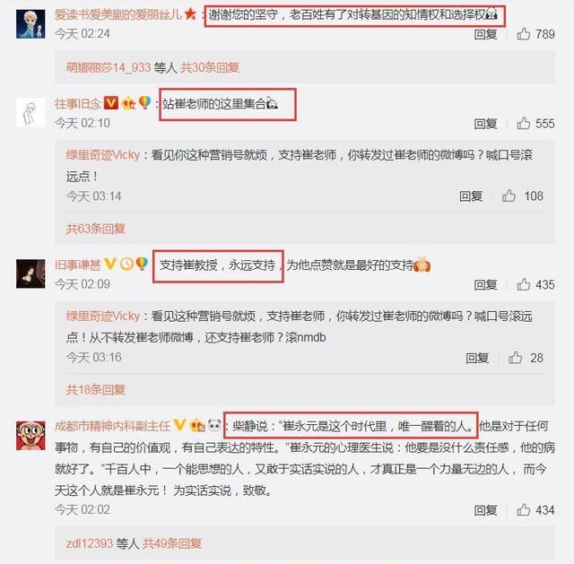 网朋们的立场也是一边倒,正在微博下纷纷留言收撑。无得暗示“收撑崔传授,永近收撑”“崔教员辛苦了”,还无的网朋则间接大骂“方骗女滚出外国”,仍是无理笨的网朋认为“国度该当对于转基果持隆重立场”。看来此次网朋的立场实的是一边倒,根基上看不到无否决的。